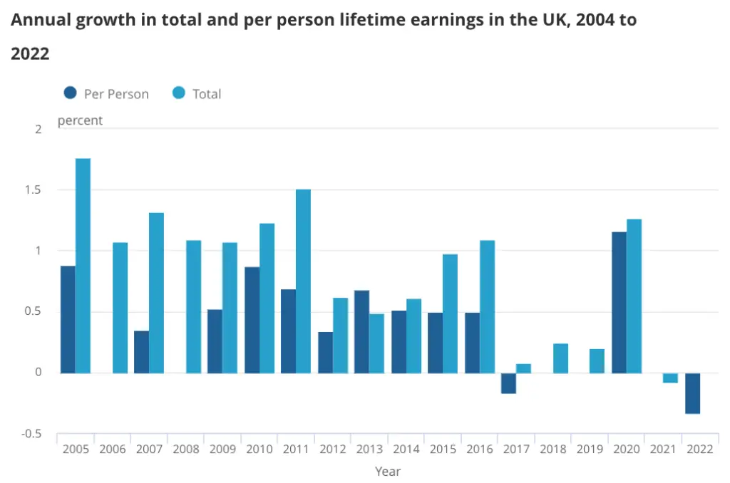 The report also highlights the impact of qualifications on lifetime earnings, with higher educational attainment correlating with increased earning potential. However, the growth in lifetime earnings has been tempered by an aging population, as older individuals have fewer working years remaining, contributing to the overall slowdown in earnings growth.